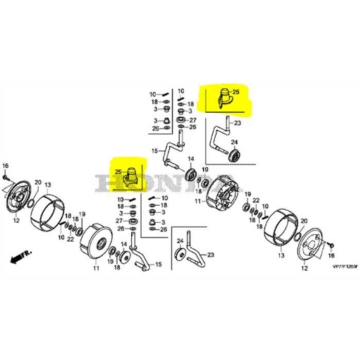 Roue avant HONDA Miimo HRM310 - 520 après 2018 bras renforcé 1 roue, 44700-VP7-A03, 44720-VP7-020, 44700VP7A03, Roue avant HONDA Miimo HRM310 - 520 après 2018 bras renforcé 1 roue